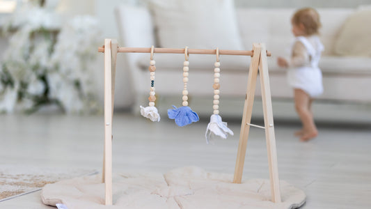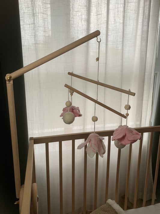Babagym | babatornáztató rózsaszín gyapjú virágokkal