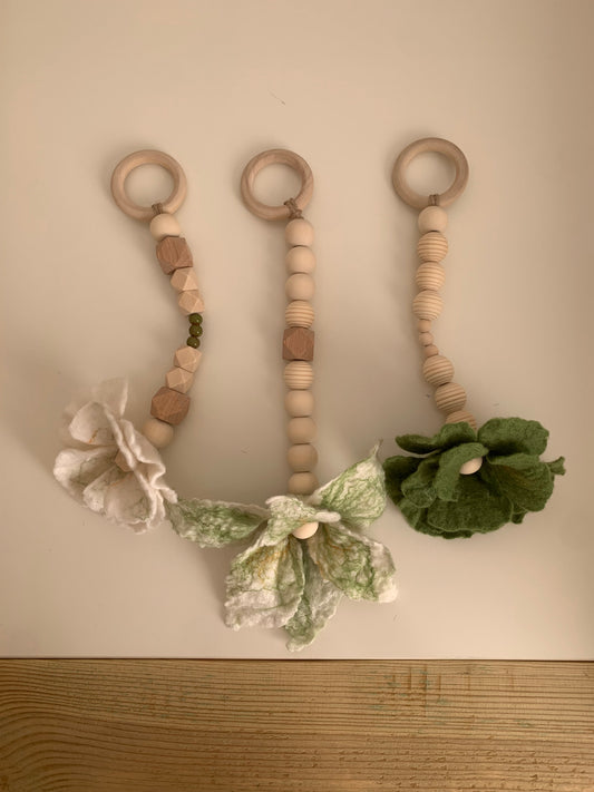 Gyapjú virág babatornáztató lógók- zöld szett
