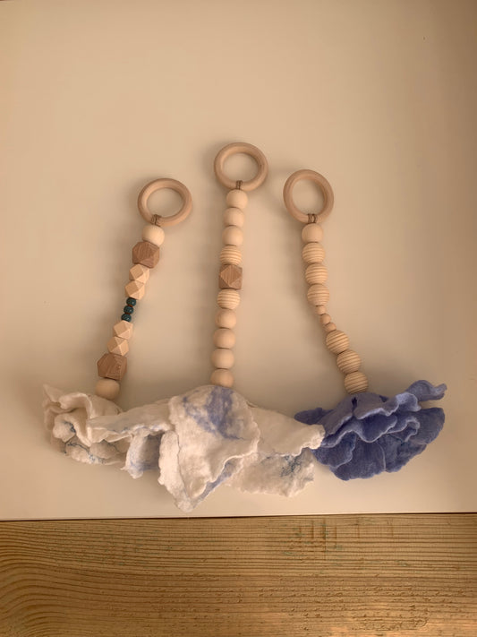 Gyapjú virág babatornáztató lógók- kék szett