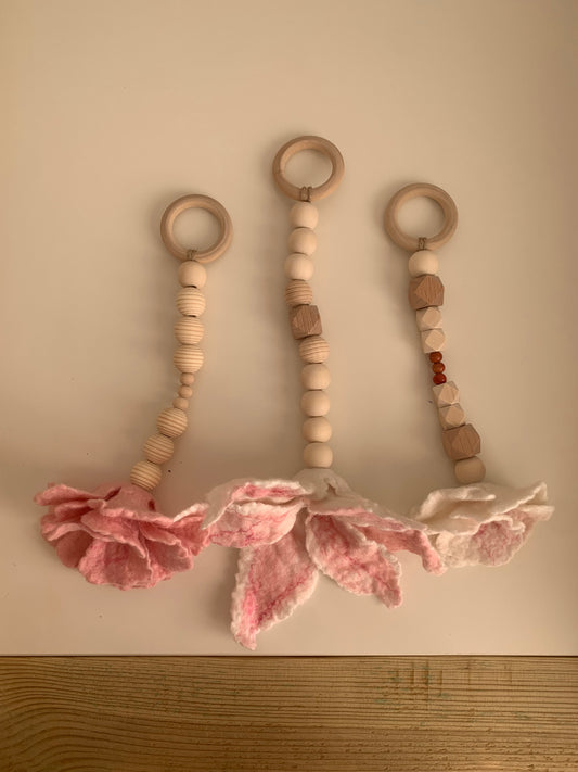 Gyapjú virág babatornáztató lógók- rózsaszín szett