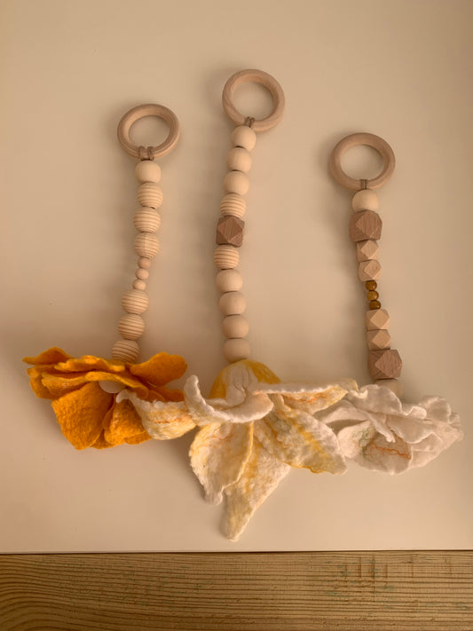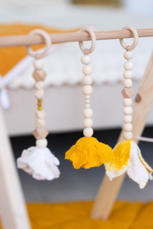 Gyapjú virág babatornáztató lógók-sárga szett