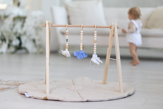 Babagym | babatornáztató kék gyapjú virágokkal