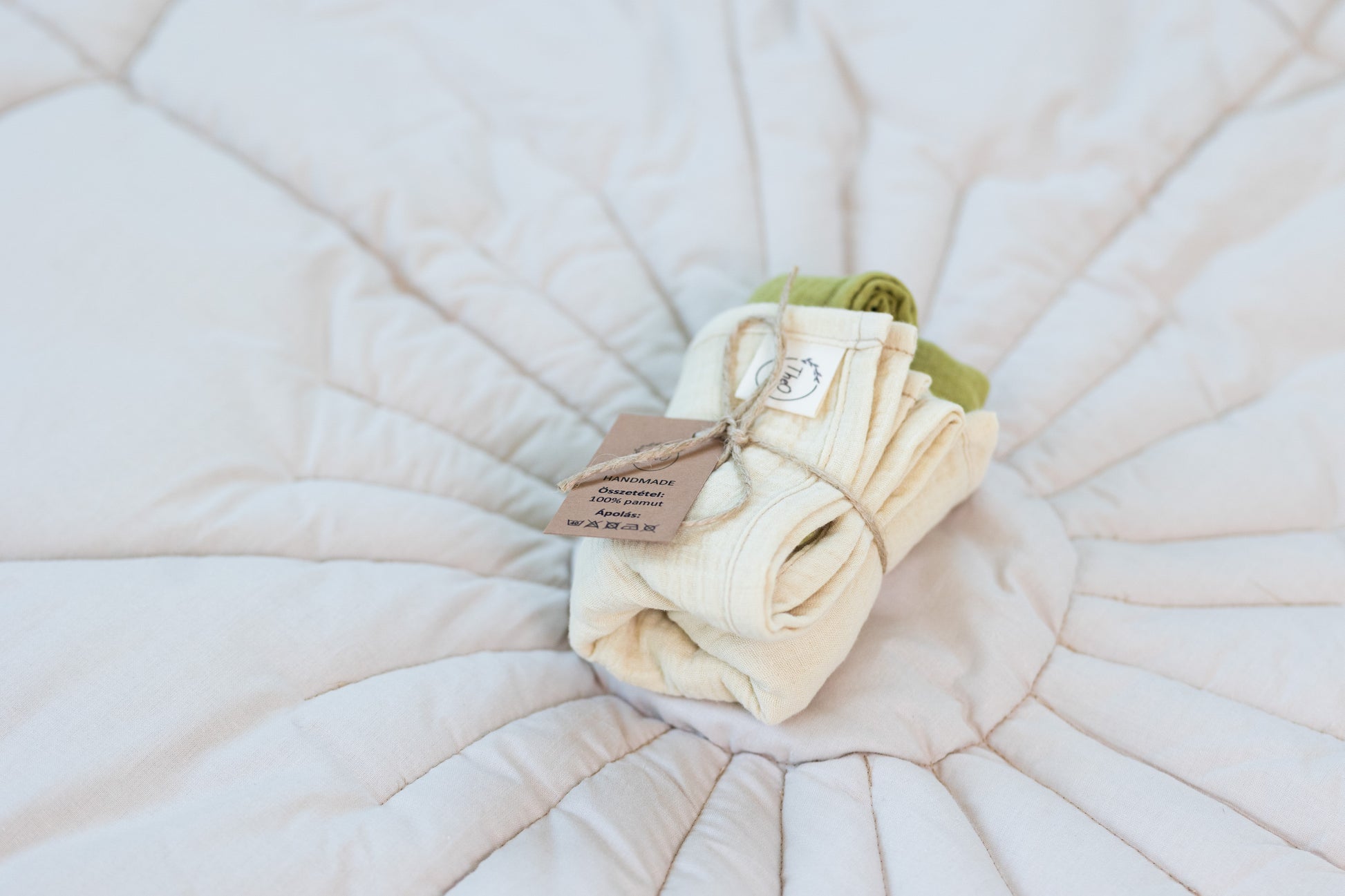 Kettő darab (törtfehér és levélzöld) pamut muszlin babakendő egy szettben! Jó nedvszívó képességű és rendkívül légáteresztő!