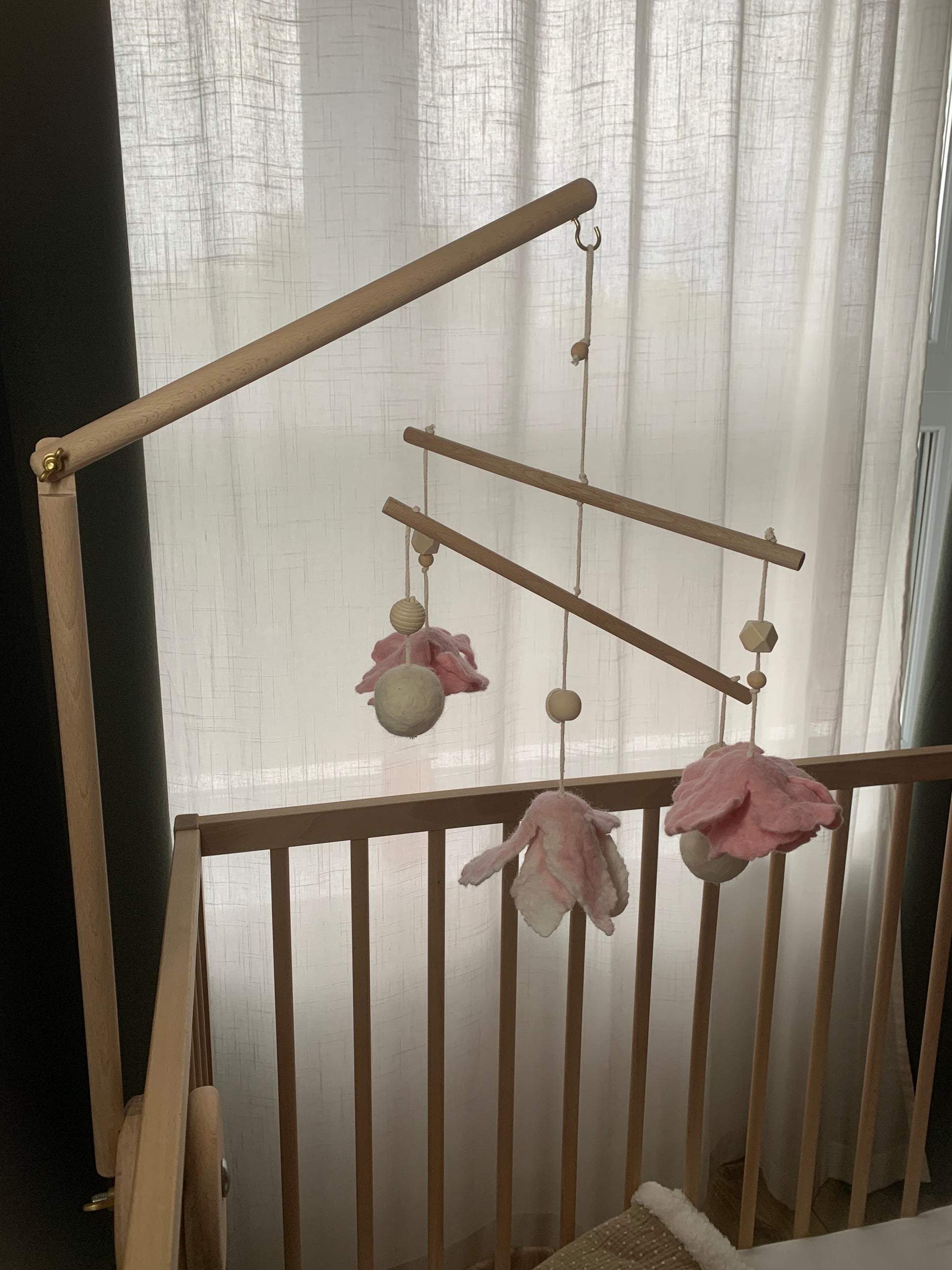 A TheObaby kiságyforgó egy szeretettel készített, természetközeli kiegészítő, amely megnyugtatja a babát, támogatja a fókuszálást és esztétikusan kiegészíti a babaszobát.